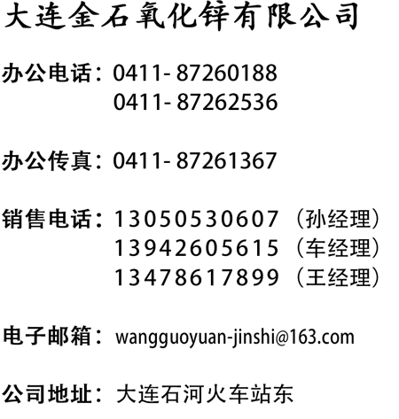 歡迎進入“大連金石氧化鋅有限公司”,如果您對我們的服務以及產品有任何的意見或者建議,可以通過以下聯系方式及時與我們溝通,我們會在第一時間給您最滿意的回復與反饋。